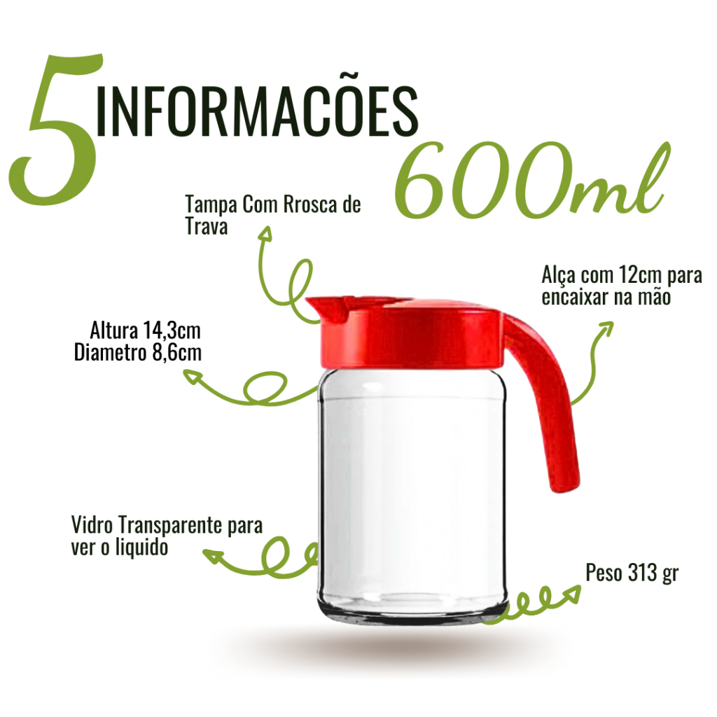 | 05 Jarras De Vidro vazia - 500 Ml com Tampa Plástica de Rosquear -S... este produto | R$ 47,52 | — | 4.8/5 | 1 |