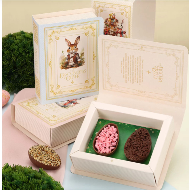 DESCRIÇÃO ESPECIFICAÇÕES TÉCNICAS: MEDIDAS DO KIT COM OS 3 LIVROS MONTADA: 11,3 cm comprimento 15,8 cm largura 13,1 cm altura MEDIDAS DE CADA LIVRO: 11,3 cm comprimento 15,8 cm largura 4,5 cm altura OBSERVAÇÕES: Importante atentar-se aos prazos das transportadoras; O pacote contém 5 unidades, formará 5 kits de 3 livros; Contém história em cada volume do livro; Os berços dão ideias para 2 mini ovos de 50g; A caixa vai desmontada para facilitar o envio e o valor do frete; As caixas não acompanham doces. As imagens são ilustrativas para demonstração do produto.