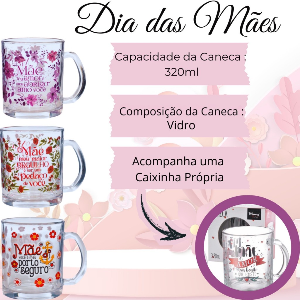 06 CANECAS 320ml MÃES VIDRO ATACADO REVENDA