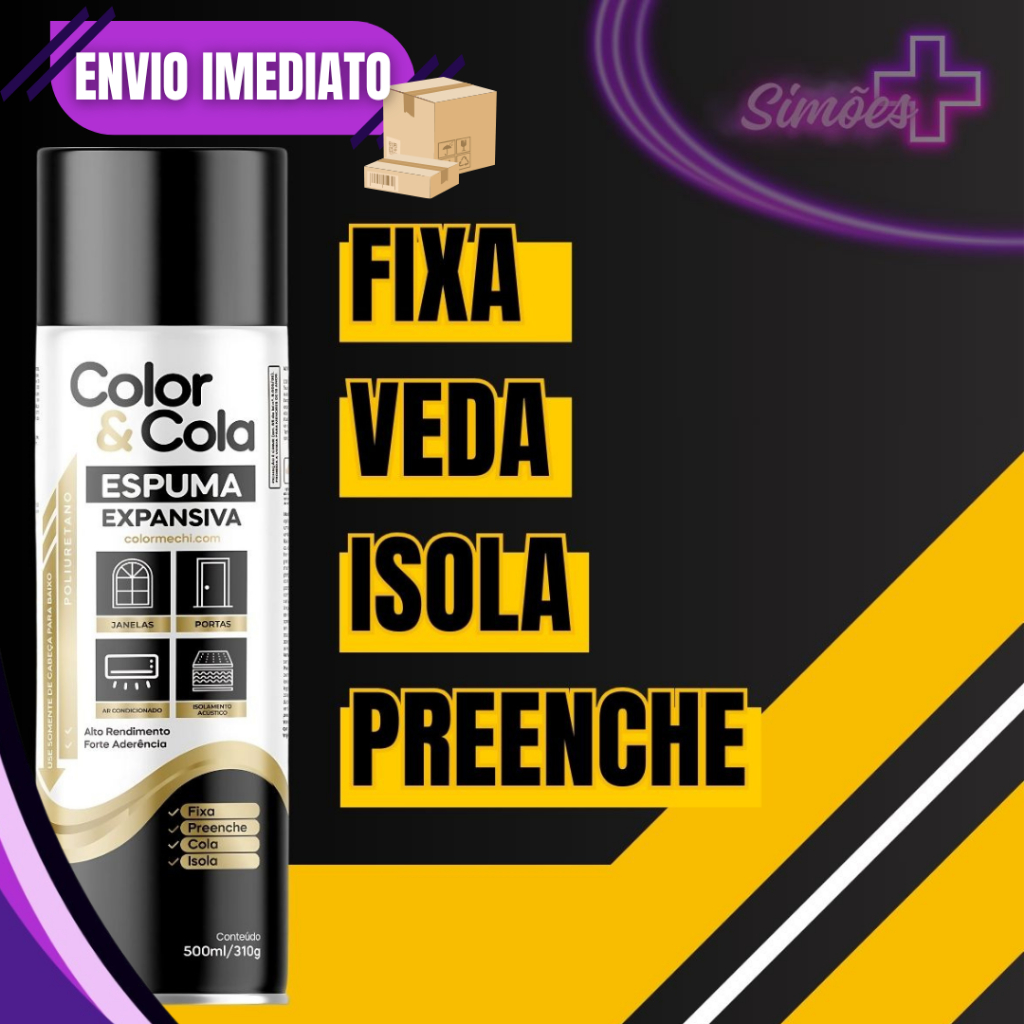 Kit 06 Unidades – Espuma Expansiva Poliuretano Profissional 500ml/310g COLOR & COLA O Kit 06 Espumas Expansivas COLOR & COLA é a escolha ideal para quem busca rendimento, eficiência e qualidade profissional em obras, instalações e reparos. Cada unidade possui fórmula de alta expansão, excelente aderência e cura rápida, garantindo vedação forte e acabamento duradouro em diversos materiais. Perfeito para preencher frestas e vãos, fixar batentes, portas, janelas, vedar infiltrações e melhorar o isolamento térmico e acústico. O kit oferece praticidade e ótimo custo-benefício para quem precisa de mais produtividade no dia a dia. Destaques do Kit 6 unidades de 500ml/310g Alta expansão e excelente rendimento Secagem rápida e aderência profissional Vedação contra água, poeira, ar e insetos Compatível com alvenaria, madeira, PVC, metal e concreto Ideal para obras, reformas e manutenção Indicado para ✔️ Preenchimento de vãos e frestas ✔️ Instalação de portas, janelas e batentes ✔️ Vedação de infiltrações e passagens ✔️ Isolamento térmico e acústico