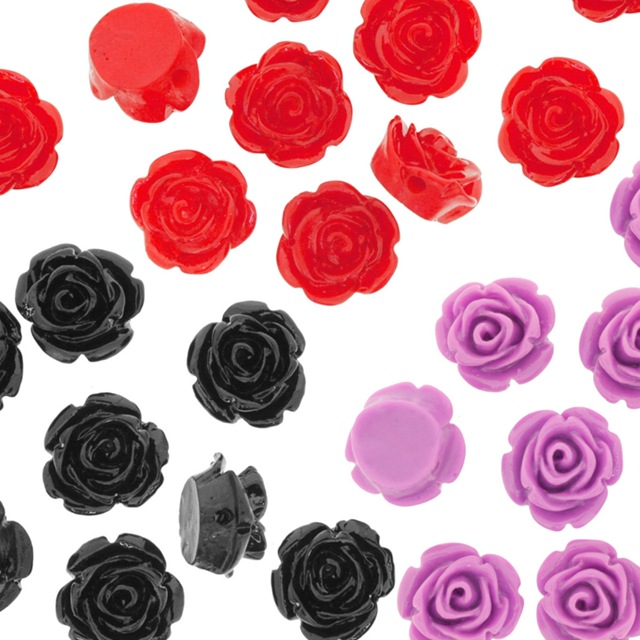 07 Peças Flor de Resina para Guias Vermelha Preta Lilás 15mm