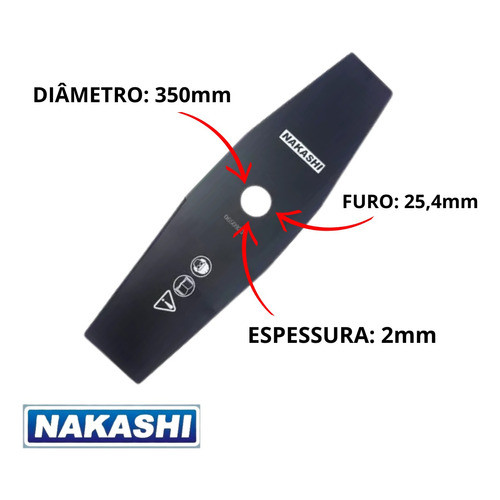 09710- Faca Lâmina Para Roçadeiras Nakashi Kawashima Husqvarna 2 Pontas 350mmx25,4x2,0