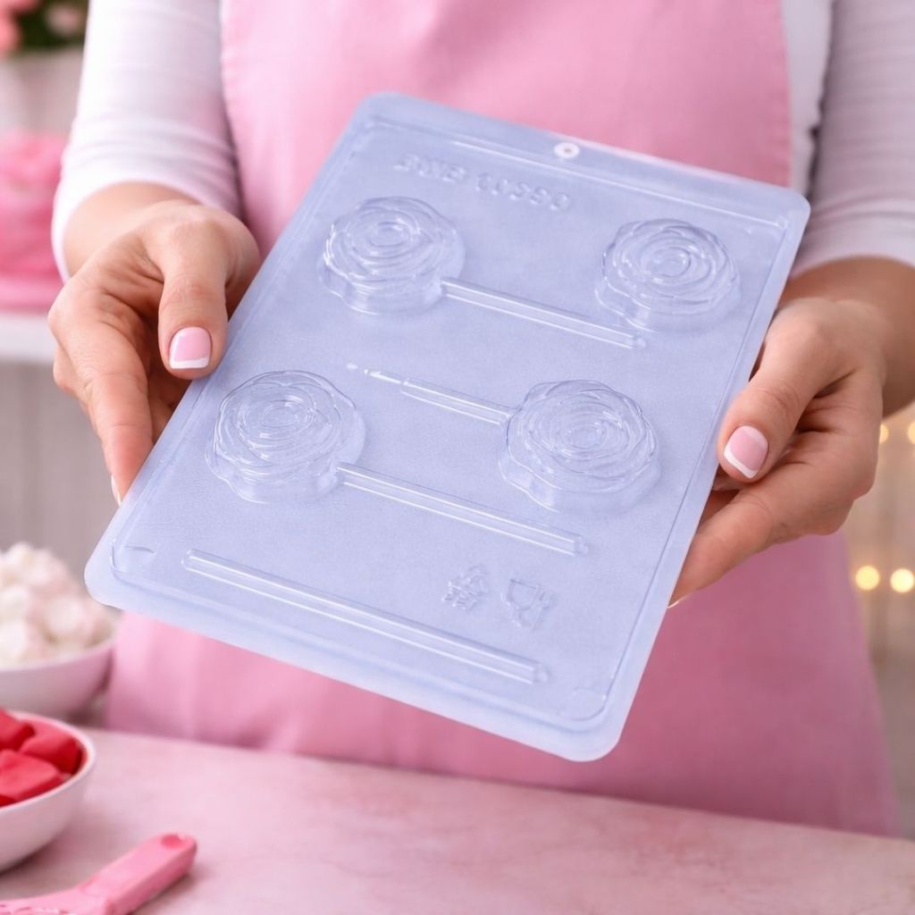 FORMA SIMPLES TRADICIONAL PIRULITO ROSA SUSPIRO 10390 Modelo: Forma Simples Cavidades: 4 C.56 x L.54 x A.9 mm Peso médio: 20 g