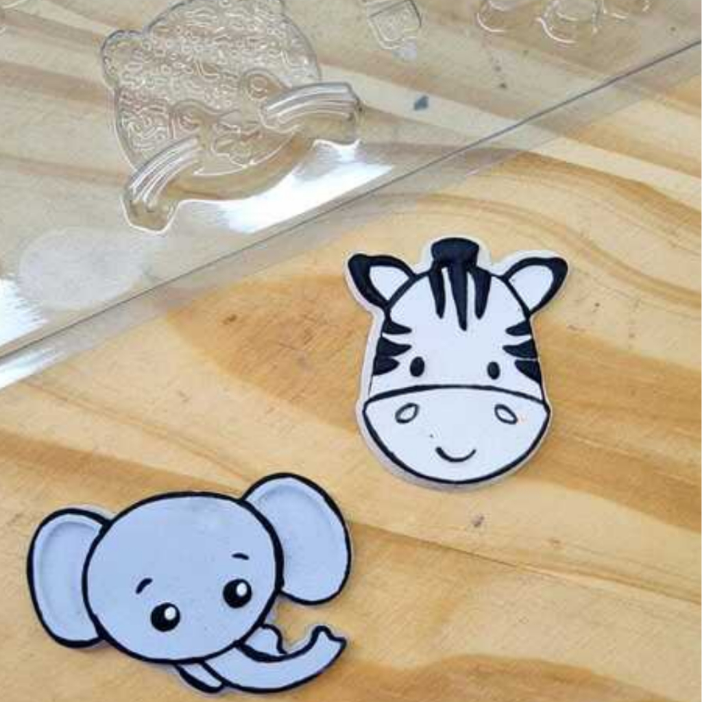 MODELO: ANIMAIS- CÓD.:9912 FORMA SIMPLES, FACILIDADE DE USO E PRECISÃO NA PRODUÇÃO DE CHOCOLATES. ELAS SÃO PROJETADAS PARA FACILITAR A PRODUÇÃO COM PROCESSOS SIMPLES E RÁPIDOS. E GARANTEM CHOCOLATES COM CASCAS UNIFORMES, ACABAMENTO BRILHANTE E PESO CONSISTENTE. QUANTIDADE: 1 UNIDADE COR: TRANSPARENTE MATERIAL: ACETATO(PVC) E SILICONE DESCRIÇÃO DO PRODUTO CAVIDADES: 8 DIMENSÕES (mm) COMP: 60 LARG: 43 ALT: 6cm