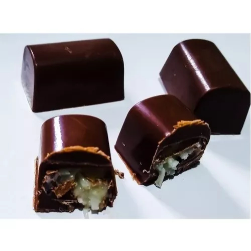 1344 - Bombom Meia Cana (1344) Forma Simples Forma Simples, ideal para produção de chocolates com muita praticidade. Abaixo mais informações do produto. mais informações Descrição do Produto Cavidades: 20 Dimensões (mm): Comp.: 35 x Larg.: 21 x Alt.: 18 Peso Médio: 15g