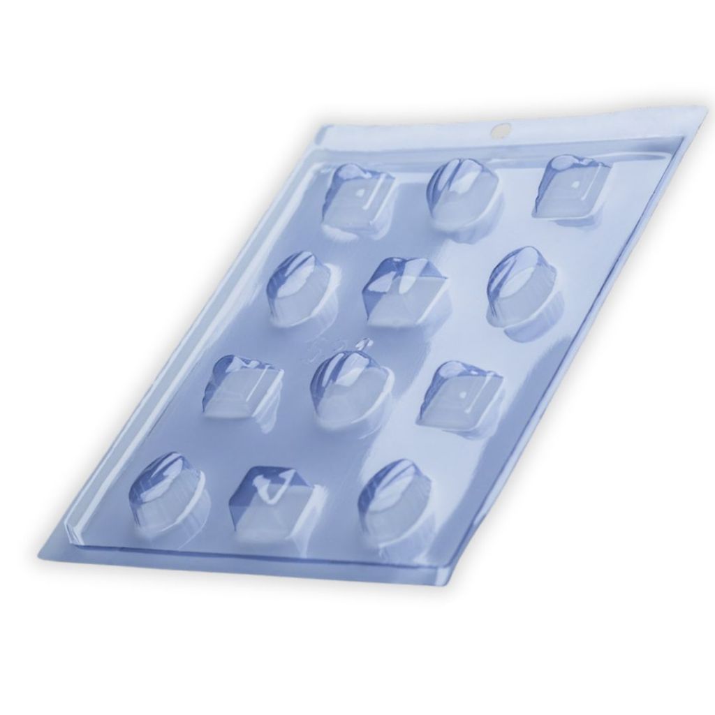 Forma Simples, ideal para produção de chocolates com muita precisão e praticidade Cód. 531 (12 cavidades) 30 x 20 x 10 (mm) Peso da casquinha: 8g
