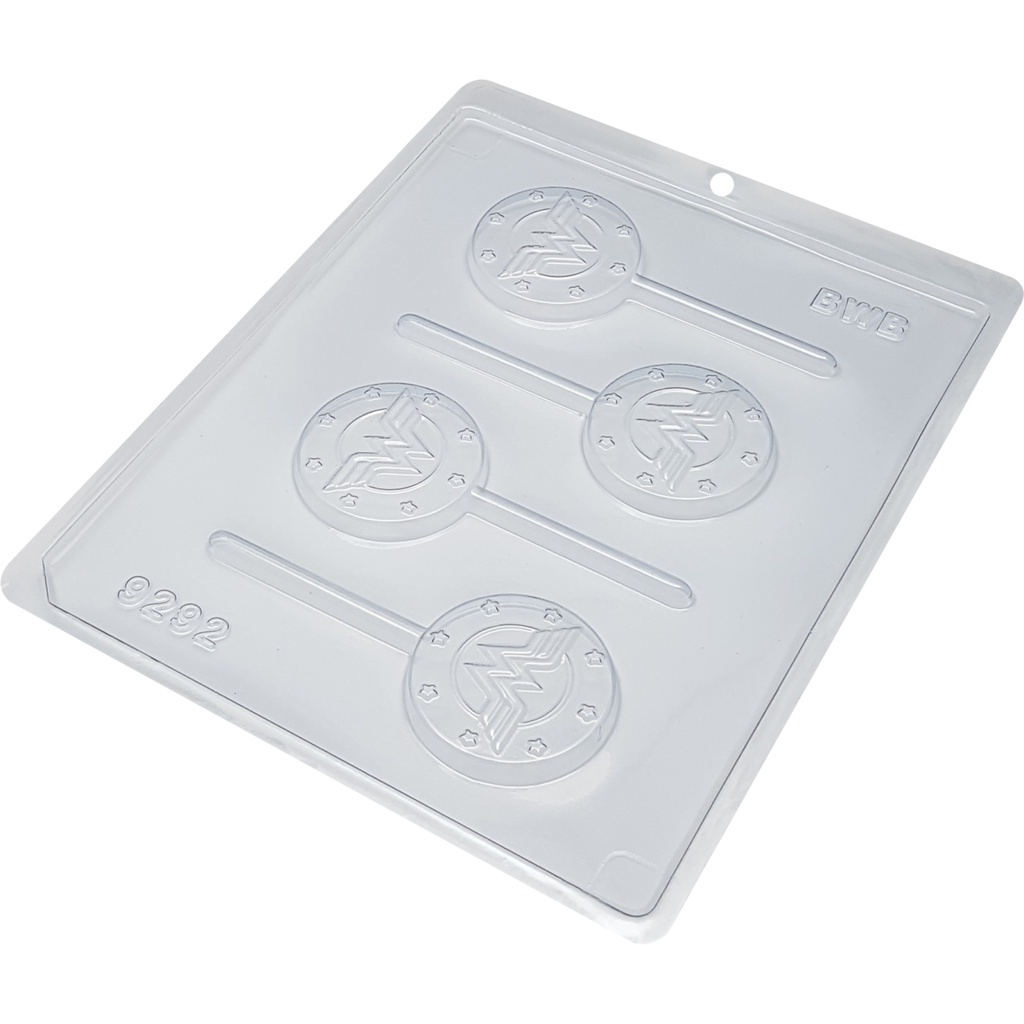 Forma Simples BWB (1 parte em acetato) Pirulito M Ideal para produção de chocolates com muita praticidade. Cód: 9292 Cavidades: 4 Diâm: 50 x Alt.: 6 Peso médio: 11g