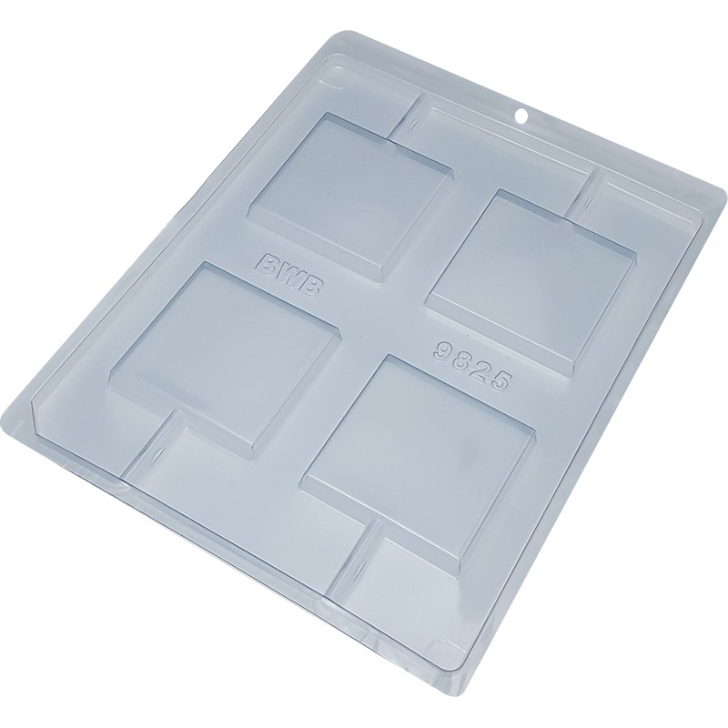 9825 - Pirulito Quadrado Liso (9825) Forma Simples Forma Simples, ideal para produção de chocolates com muita praticidade. Abaixo mais informações do produto. mais informações Descrição do Produto Cavidades: 4 Dimensões(mm): Comp.: 60 x Larg.: 60 x Alt.: 8 Peso Médio: 35g