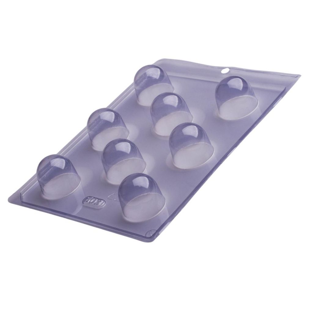 Forma Simples, ideal para produção de chocolates com muita precisão e praticidade. Cód 503 (8 cavidades) 38 diam x 33 alt (mm) Peso da casquinha: 35g