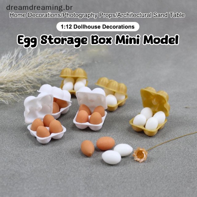 1 : 12 Casa De Bonecas Simulação Bandeja De Ovo Caixa Com Ovos Cozinha Comida Decoração Em Miniatura Acessórios De Cena