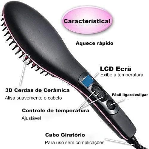 MELHOR RESULTADO COM OS CABELOS LIMPOS E COM USO DE PRODUTOS PRÓPRIOS PARA ALISAMENTO ATENÇÃO NÃO É COMO CHAPINHA ELA TIRA O FRIZ E BAIXA O VOLUME IDEAL PARA MANUTENÇÃO DE CABELOS LISOS, ONDULADOS E CABELOS PREVIAMENTE ALISADOS Diâmetro da chapa térmica: Variável, de 21 a 30 mm Temperatura da chapa: até 230º Tempo de aquecimento: 30-45 segundos Tempo para alisamento: 5 segundos Voltagem: de 110V a 220V ( BIVOLT ) Comprimento do fio: 1,30m ITENS INCLUSOS: Escova Elétrica Alisadora Manual SKU: nz-907-preto