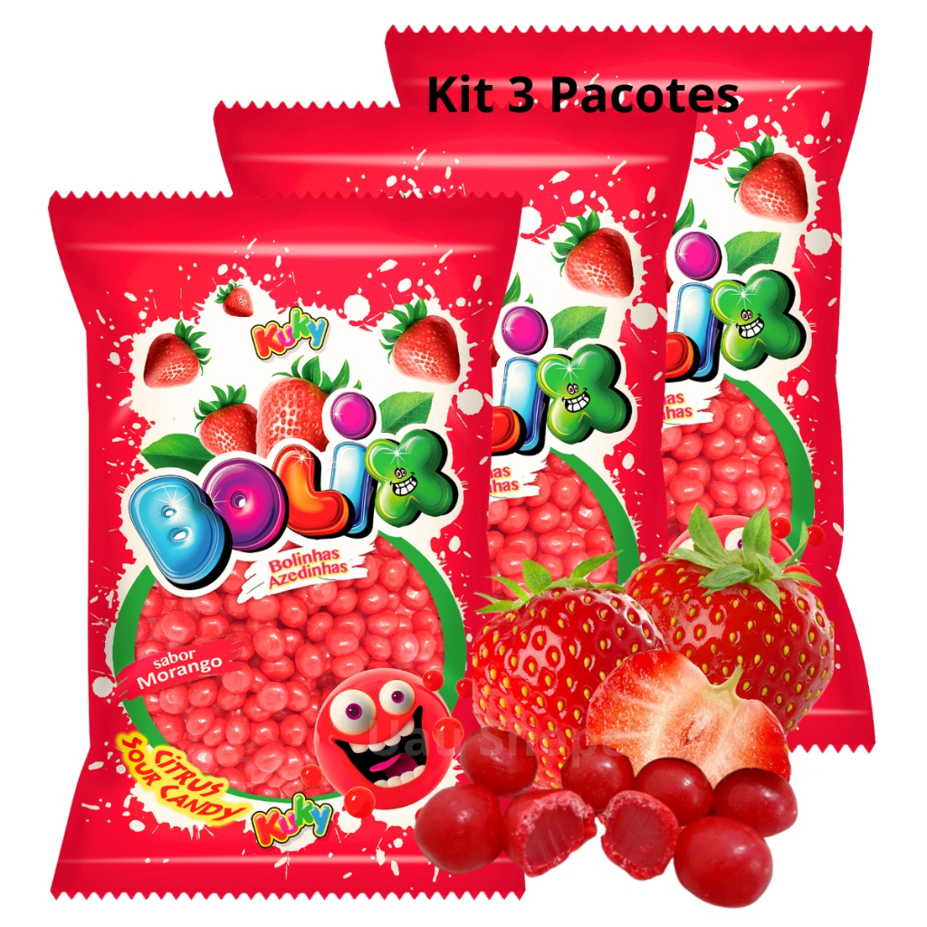 1/2/3 Bala De Goma Azedinha Bolix Morango 500g - Kuky