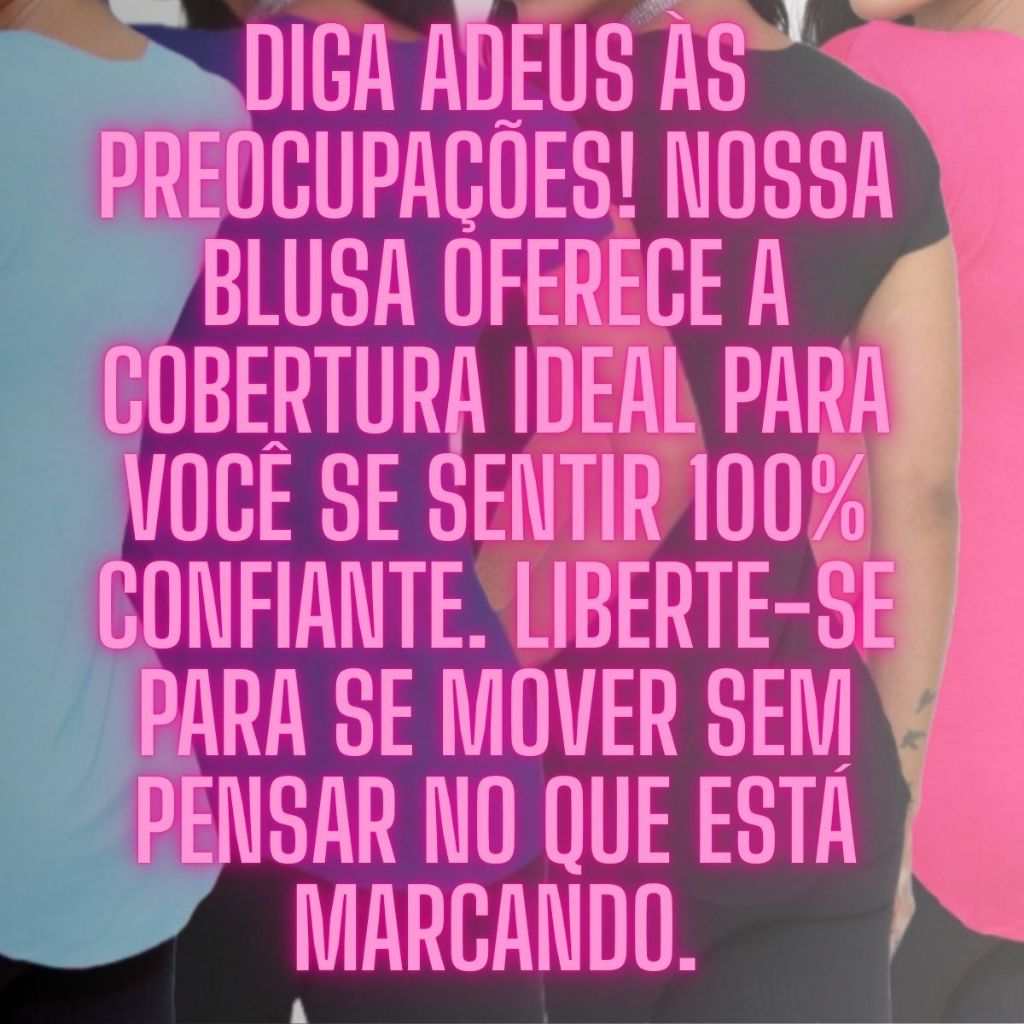 Conforto, Confiança e Estilo: Sua Nova Blusa "Tapa Bumbum" Chegou! VARIAÇÕES 1 BLUSA 2 BLUSAS 3 BLUSAS Apresentamos nossa blusa feminina "tapa bumbum", a peça chave que faltava no seu guarda-roupa. Liberte-se para viver cada momento com a combinação perfeita de conforto inigualável e confiança absoluta! Desenvolvida com uma malha super fresca e um caimento impecável, ela oferece a cobertura ideal para você se sentir à vontade e protegida do dia a dia à academia. Esqueça as preocupações: nosso tecido premium não forma bolinhas, mantendo sua blusa linda e com aparência de nova por muito mais tempo. Tecido confortável e com excelente elasticidade Modelagem acinturada que valoriza a silhueta Versátil: Perfeita para combinar com leggings, jeans ou shorts. Durável: Qualidade que resiste ao tempo e às lavagens. Frescor Garantido: Para acompanhar seu ritmo sem abrir mão do bem-estar. Sinta-se poderosa, livre e incrivelmente estilosa. Eleve seu conforto e transforme seus looks. Garanta já a sua e redescubra o prazer de se vestir! TEMOS 1 UNIDADE 2 UNIDADES 3 UNIDADES CORES PADRÕES QUE COMBINA COM QUALQUER LOOK TAMANHO P-M TAMANHO G-GG APROVEITE E GARANTA HOJE MESMO POIS NOSSO ENVIO É IMEDIATO