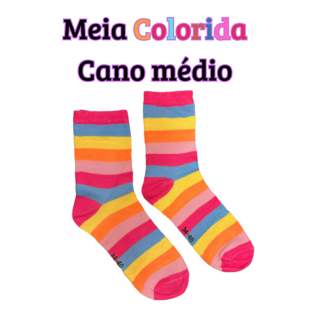 1 - 2 - 3 Pares de Meias Arco-Íris Coloridas Curta - Infantil e Adulto 34 ao 40