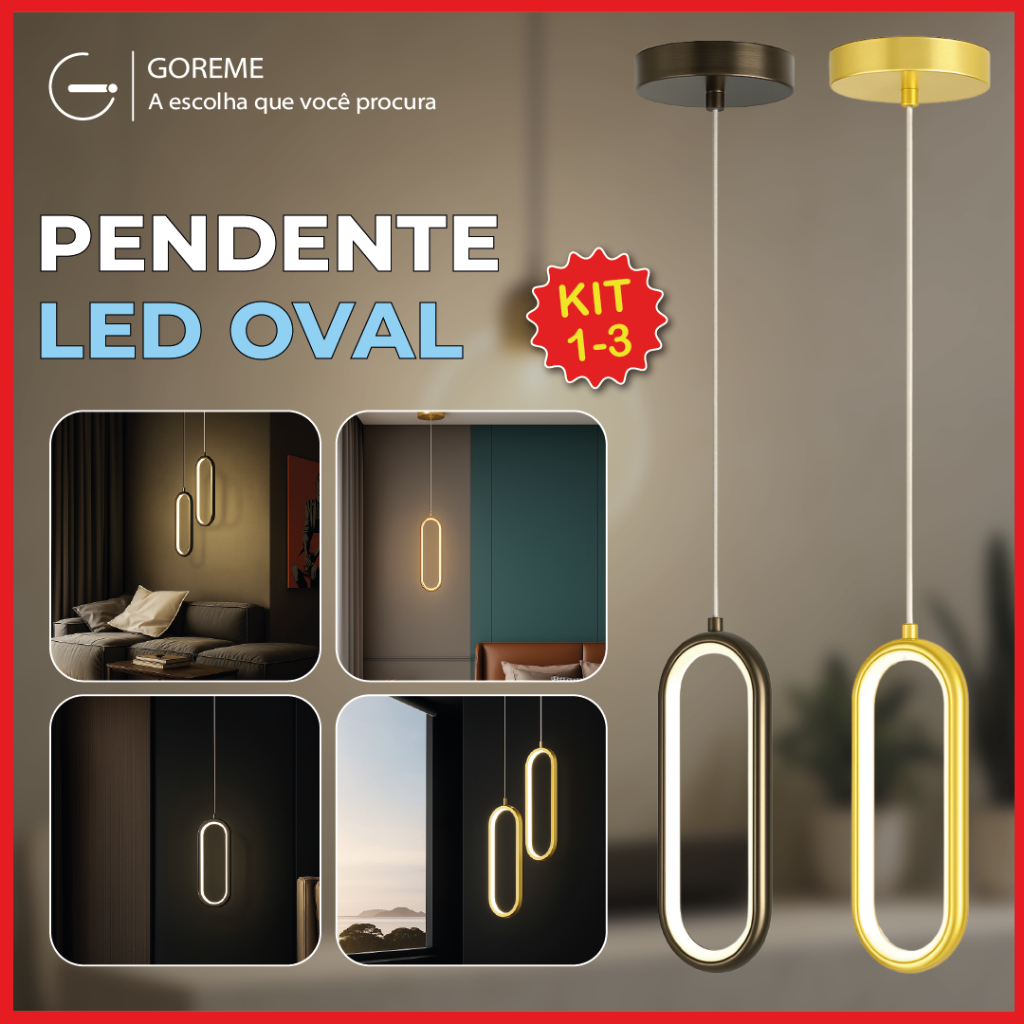 💡 Luminária Pendente LED Oval Dourada ou Preta – Design Minimalista de Luxo | 18W | Bivolt 110V-220V Transforme seus ambientes com a elegância moderna da Luminária Pendente Oval LED. Com acabamento dourado ou preto fosco e tecnologia LED integrada, é perfeita para composições em cabeceiras, banheiros, lavabos, halls de entrada e muito mais. Seu formato oval proporciona uma iluminação suave e contínua, ideal para projetos residenciais e comerciais. 🔧 Especificações Técnicas • Modelo: Pendente LED Oval • Cores disponíveis: Dourado Fosco ou Preto Fosco • Fluxo Luminoso: 1200 lúmens • Voltagem: Bivolt (110V-220V) • Material: Alumínio + ABS de alta resistência • Difusor: Silicone • LED Integrado: Sim (Driver embutido) • Ambiente indicado: Interno • Luz: Branco Quente 📏 Dimensões • Base (suporte): 6 cm (diâmetro) x 8 cm (altura) • Corpo do pendente: 34 cm (altura) x 10 cm (largura) x 2 cm (espessura) • Comprimento do fio: 100 cm (ajustável) • Cor do fio: Preto ✅ Benefícios e Diferenciais • Design moderno e minimalista • Ideal para composições com diferentes alturas • Iluminação uniforme e aconchegante • Alta durabilidade com materiais premium • Fácil instalação com parafusos inclusos • Econômico e sustentável com LED de alta eficiência 🛠️ Itens Inclusos • 01 Luminária Pendente LED Oval • Parafusos e suporte para instalação ⚠️ ATENÇÃO: O título "Kit 3" não influencia na quantidade enviada. Escolha a quantidade desejada (1 até 3 peças) nas variações abaixo. 📦 Entrega rápida + Nota Fiscal!