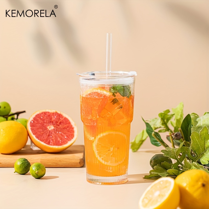 1/2 Unidades , Copos De Vidro Com Tampas E Canudos Elegantes Design Canelado Para Xícaras De Café Gelado , Suco , Smooth