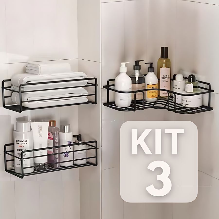 **FOTOS MERAMENTE ILUSTRATIVAS.** **ADESIVOS PODEM VARIAR DEPENDENDO DO LOTE**CORES ENVIADAS DE FORMA ALEATORIA E CONFORME DISPONIBILIDADE DO ESTOQUE** Transforme seu banheiro com nosso Kit Suporte de Shampoo Organizador! Este conjunto inclui duas prateleiras retas e uma de canto, todas projetadas para maximizar o espaço e manter seus produtos de higiene organizados e ao alcance. Características: Instalação Sem Furos: Fácil de instalar com adesivos resistentes, sem necessidade de furar a parede. Material Durável: Feito de acrílico de alta qualidade, resistente à água e ao desgaste. Design Moderno: Estilo elegante e funcional, com design oco esculpido que evita o acúmulo de água. Versatilidade: Ideal para armazenar shampoos, condicionadores, sabonetes e outros itens de banheiro. Instalação: Limpe a superfície onde deseja instalar. Remova a película protetora dos adesivos e cole na parede Aguarde pelo menos 24h para instalar as prateleiras e colocar objetos Pressione firmemente as prateleiras na parede. Inclui: 2 Prateleiras Retas 1 Prateleira de Canto Adesivos de Fixação Garanta já o seu Kit Suporte De Shampoo Organizador e mantenha seu banheiro sempre organizado e elegante! Feature:Waterproof Material:Metal Assembly:Fully Assembled