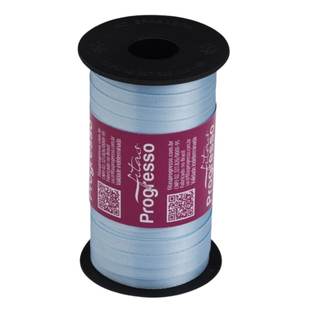 Fita de Cetim 7mm Rolo 100 Metros Descrição do produto Cor: Azul bebê Dupla Face Largura: 7 mm Embalagem: 01 Rolo com 100 metros Lisa / Sem Estampa Composição: 100% Poliéster Fabricante: Fitas Progresso
