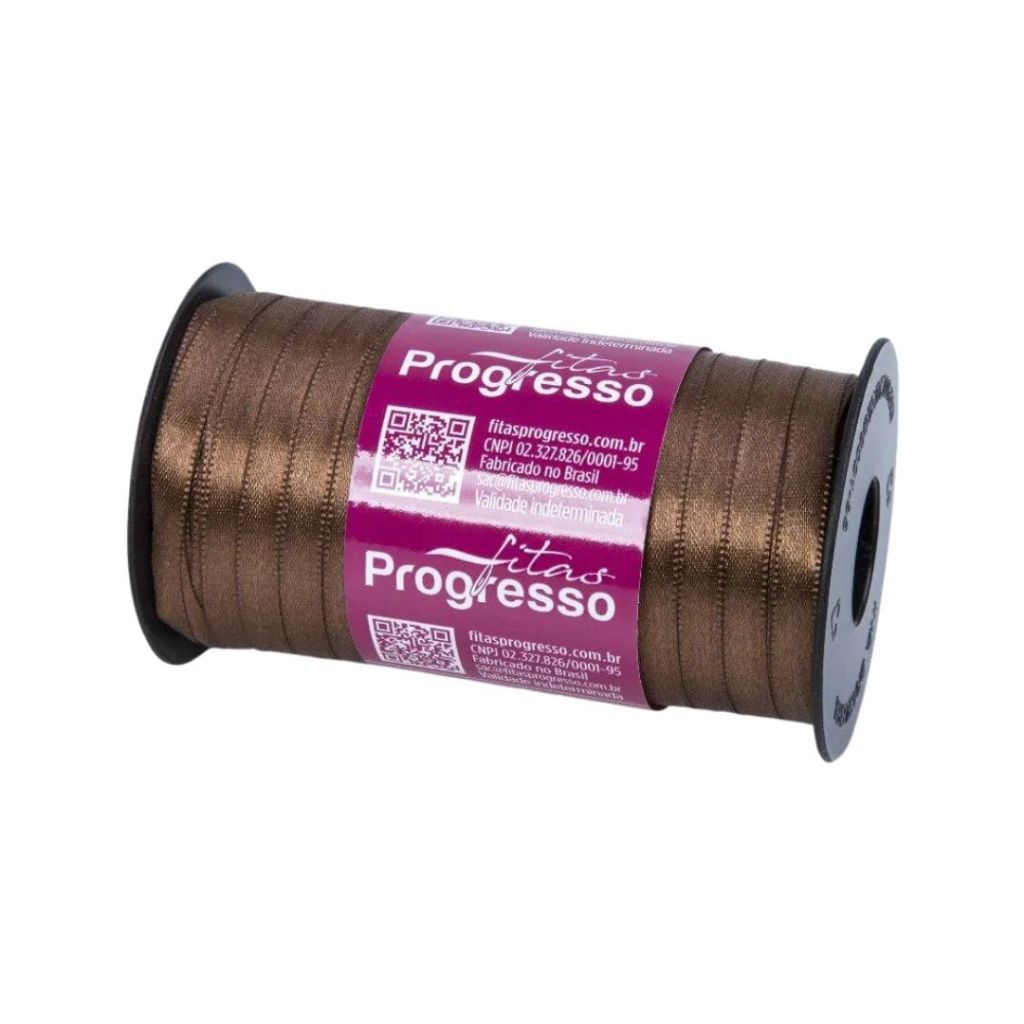 Fita de Cetim 7mm – Rolo 100 Metros Descrição do produto Cor: Marrom Dupla Face Largura: 7 mm Embalagem: 01 Rolo com 100 metros Lisa / Sem Estampa Composição: 100% Poliéster Fabricante: Fitas Progresso