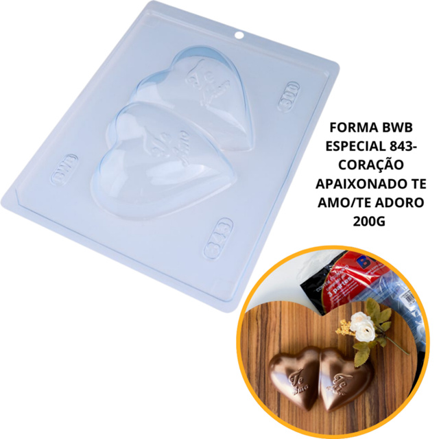 1~4 Forma bwb com silicone (3 partes) cod 843 - Coração Apaixonado TE AMO, TE ADORO 250 gramas// (CHOCO)