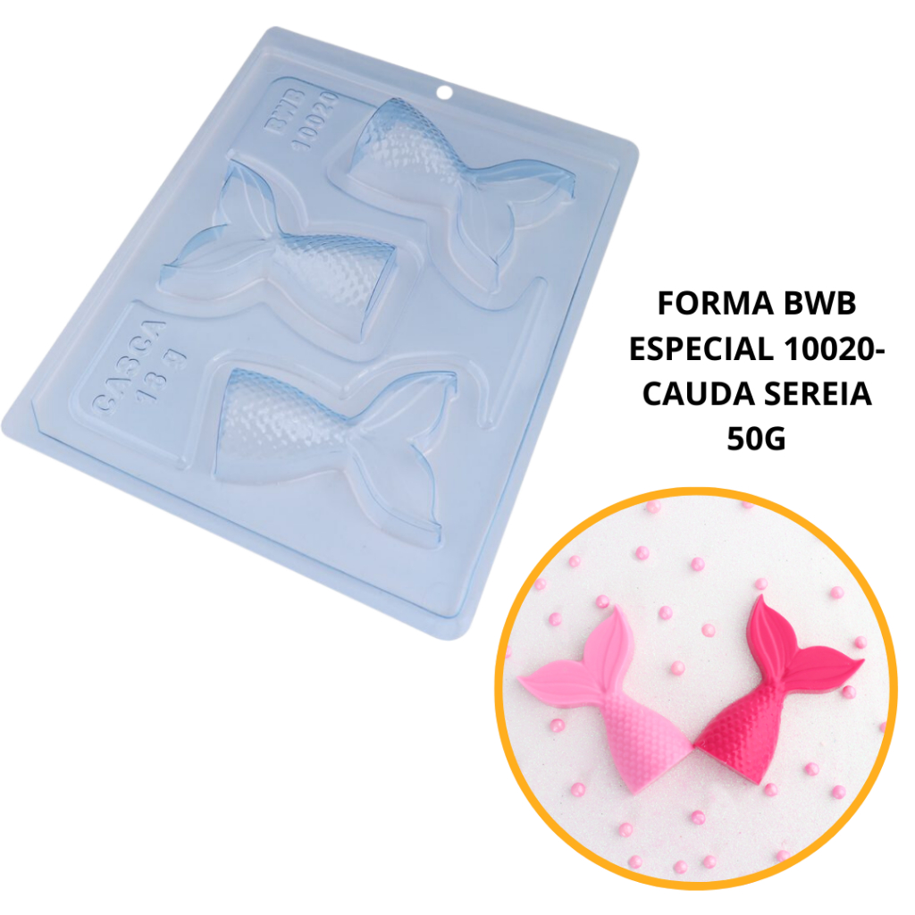 1~4 Forma BWB Com Silicone (3 partes) Para Chocolate Cód. 10020 - Cauda da Sereia 50g. (CHOCO)