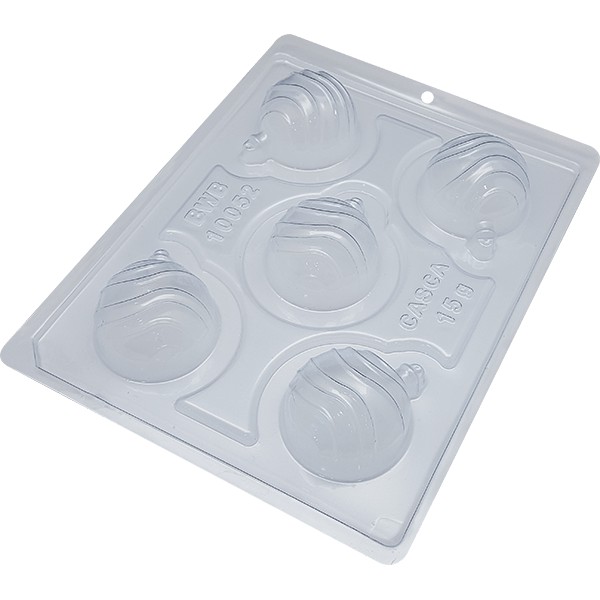 1~4 Forma BWB Com Silicone (3 partes) Para Chocolate Cód.10052-Bolinha de Natal Listrada 50g. Natal.