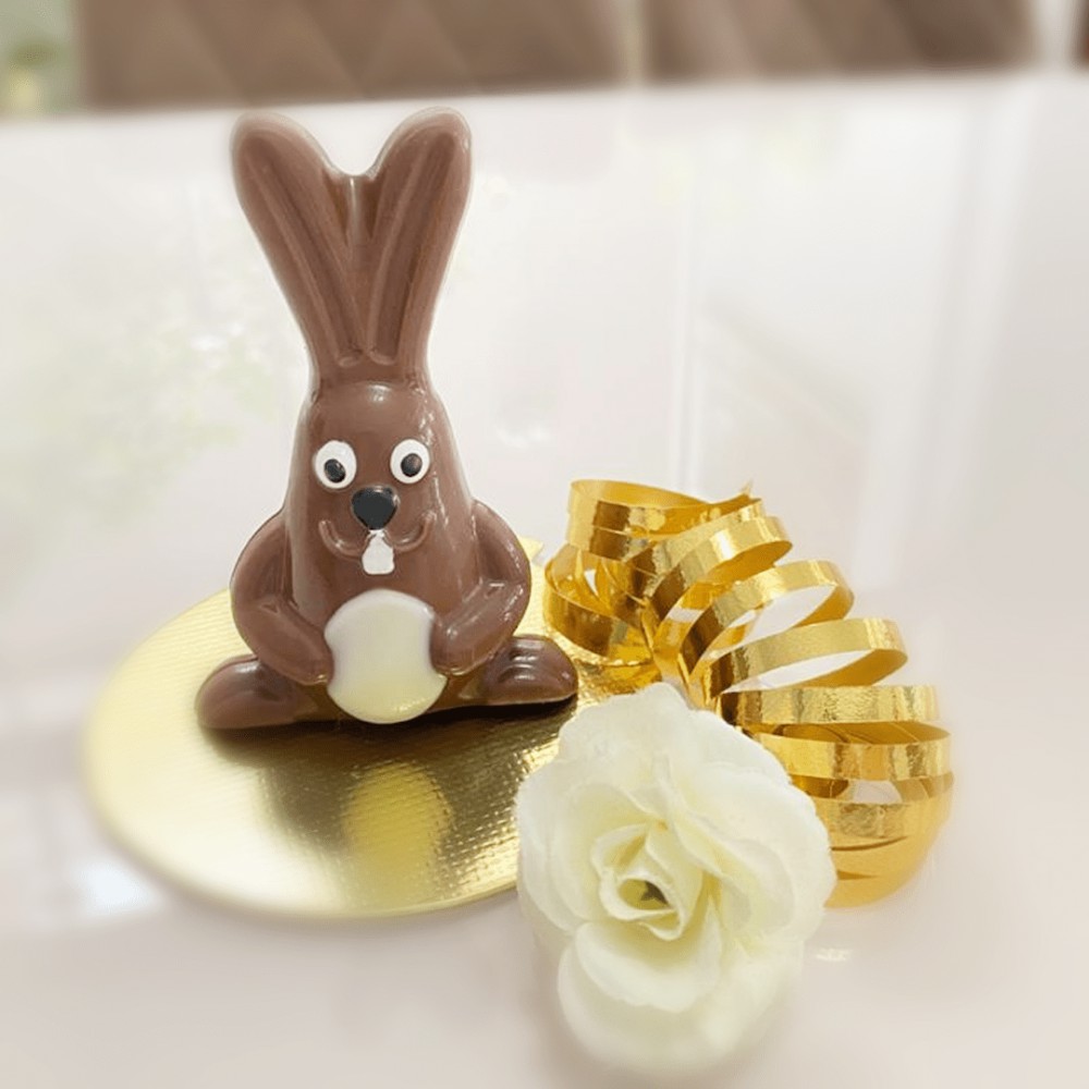 10057 - Coelho Dentão (10057) Especial (3 Partes) Forma especial com silicone (3 partes), ideal para produção de chocolates com muito mais praticidade e precisão. Abaixo mais informações do produto. mais informações Descrição do Produto Cavidades: 2 Dimensões (mm): Comp.: 150 x Larg.: 100 x Alt.: 35 Peso Casquinha: 40g Peso Médio: 80g