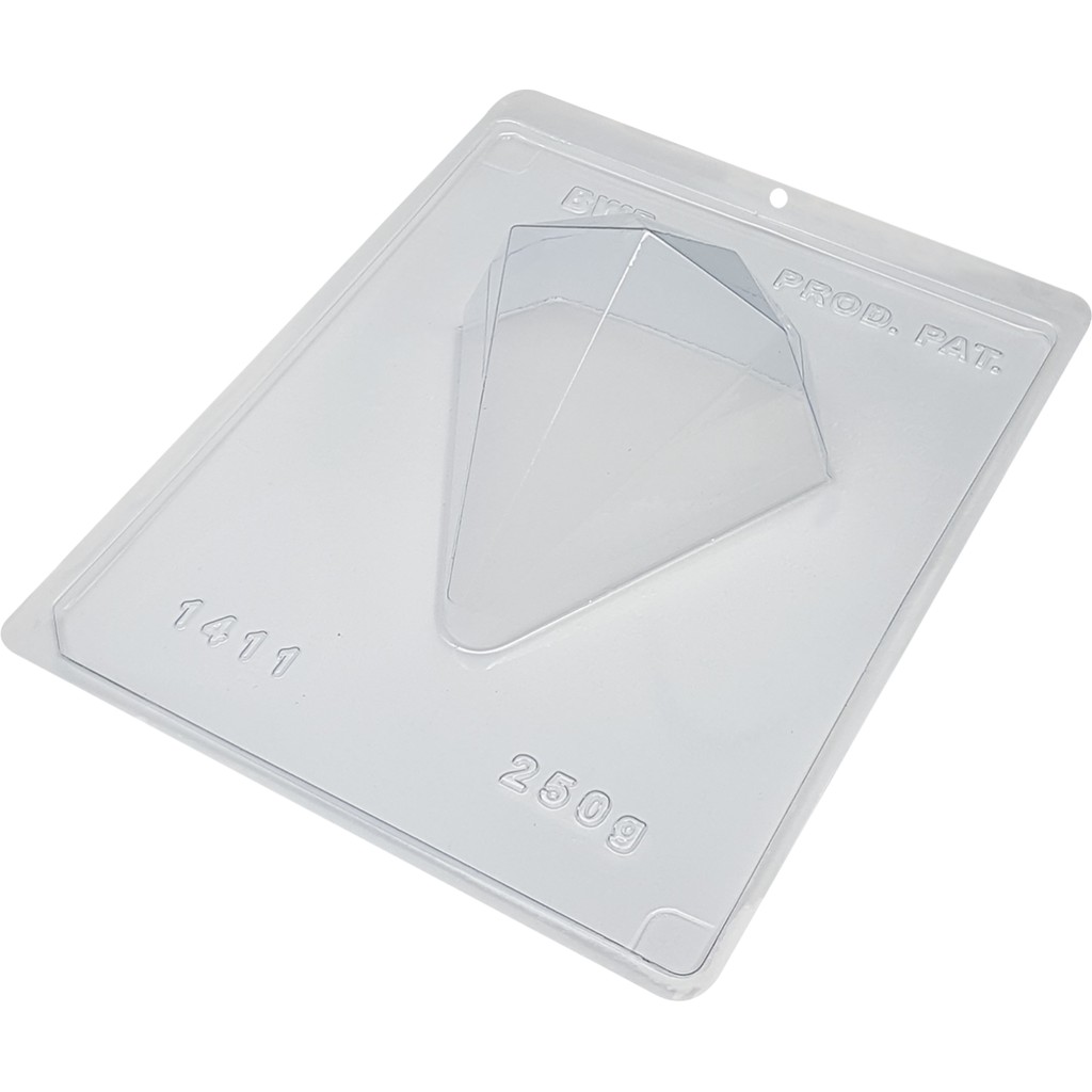 1411 - Ovo Diamante 250g (1411) Especial (3 Partes) 1~4 Forma especial com silicone (3 partes), ideal para produção de chocolates com muito mais praticidade e precisão. Abaixo mais informações do produto. mais informações Descrição do Produto Cavidades: 1 Dimensões (mm): Comp.: 114 x Diâm.: 105 Peso Casquinha: 78g Peso Médio: 250g