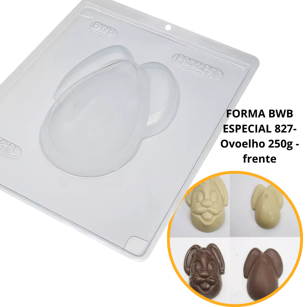 1~4 Forma BWB Com Silicone (3 partes) Para Chocolate Cód. 827 - Ovoelho (F) 250g. Páscoa (CHOCO)