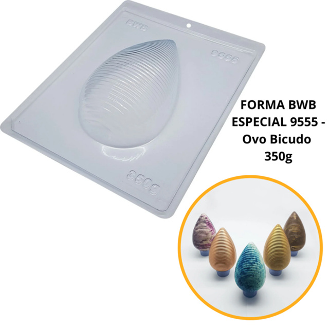 1~4 Forma BWB Com Silicone (3 partes) Para Chocolate Cód. 9555 - Ovo Bicudo 350g. Páscoa (CHOCO)