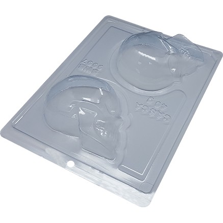 9997 - Crânio (9997) Especial (3 Partes) Forma especial com silicone (3 partes), ideal para produção de chocolates com muito mais praticidade e precisão. Abaixo mais informações do produto. mais informações Descrição do Produto Cavidades: 2 Dimensões (mm): Comp.: 95,5 x Larg.: 93,5 x Alt.: 34,5 Peso Casquinha: 40g