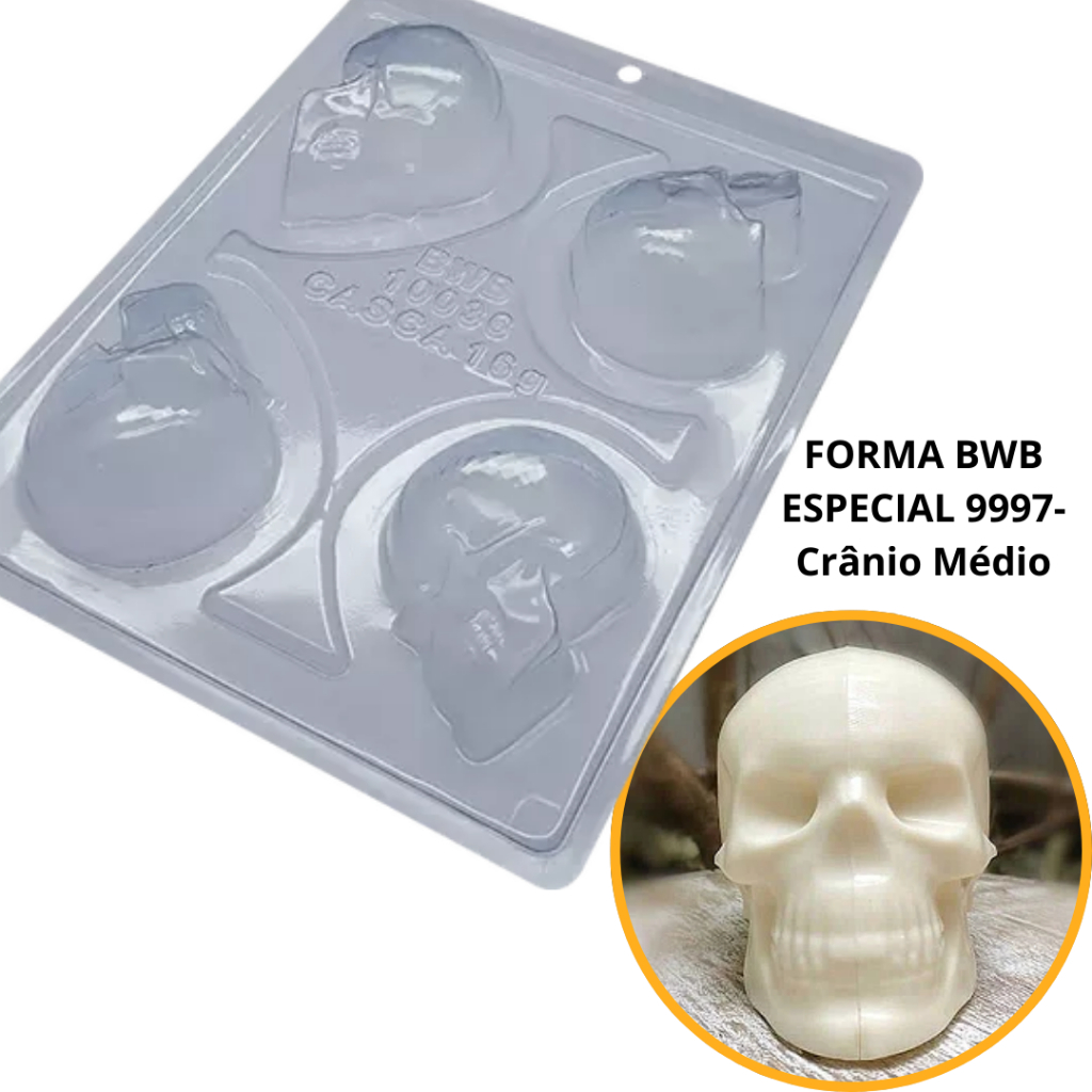 1~4 Forma BWB Com Silicone (3 partes) Para Chocolate Cód. 9997 - Crânio. Halloween Dia Das Bruxas