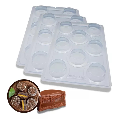 CÓD: 3513 (SP 801) PÃO DE MEL PEQUENO ESPECIAL Cavidades: 8 Diâm.: 61,5 x Alt.: 24 Peso casca: 22 Peso médio: 78 1~4 Forma especial com silicone (3 partes), ideal para produção de chocolates com muito mais praticidade e precisão. Possui uma “marquinha” indicando a quantidade necessária de chocolate, levando para geladeira uma única vez. Ela proporciona uma casca uniforme e um acabamento perfeito sempre com o mesmo peso. Abaixo mais informações do produto.