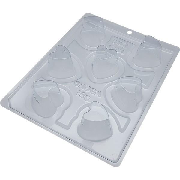 9685 - Copo Mousse 10 Descrição do Produto Cavidades: 7 Dimensões (mm): Comp.: 41 x Larg.: 41 x Alt.: 30 Peso Casquinha: 12g Peso Médio: 35g 1~4 Forma especial com silicone (3 partes), ideal para produção de chocolates com muito mais praticidade e precisão. 1 parte de moldar 1 silicone para desinformar 1 parte de baixo para pressionar MAIS RESISTENTE REUTILIZÁVEL PRATICO RÁPIDO MUITO MAIS FÁCIL DE FAZER MAIS TRANSPARÊNCIA INCOLOR MARCA ATÉ ONDE coloca o chocolate