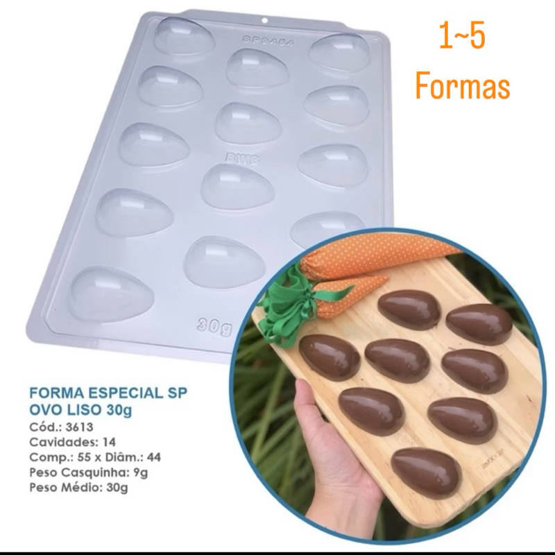 1~4 Forma Silicone Ovo de pascoa Liso 30g Linha Premium - BWB cod 3613, SP 9454 Descrição do produto cavidades:14 Diãm:55x Alt:44 Peso Casquinha:9g Peso Médio:30g
