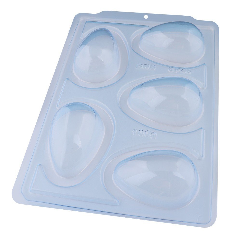 3615 - SP 48 Ovo Liso 100g (3615) Semiprofissional Especial 1~4 Forma Especial, ideal para produção de chocolates com muita praticidade. Abaixo mais informações do produto. mais informações Descrição do Produto Cavidades: 5 Dimensões (mm): Comp.: 98 x Diâm.: 68 Peso Casquinha: 38g Peso Médio: 100g