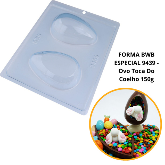 Forma Silicone Ovo Toca Do Coelho150G BWB (cód.9439) Doces Páscoa Chocolate Decoração Festa Confeitaria