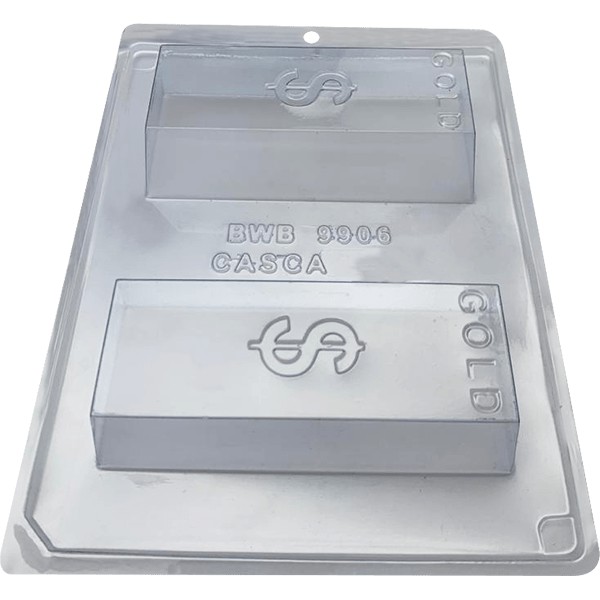 MODELO: BARRA DE OURO- CÓD.:9906 FORMA ESPECIAL (3 PARTES), FACILIDADE DE USO E PRECISÃO NA PRODUÇÃO DE CHOCOLATES. ELAS SÃO PROJETADAS PARA FACILITAR A PRODUÇÃO COM PROCESSOS SIMPLES E RÁPIDOS. E GARANTEM CHOCOLATES COM CASCAS UNIFORMES, ACABAMENTO BRILHANTE E PESO CONSISTENTE. QUANTIDADE: 1~4 UNIDADES COR: TRANSPARENTE MATERIAL: ACETATO(PVC) E SILICONE DESCRIÇÃO DO PRODUTO CAVIDADES: 2 DIMENSÕES (mm): COMP.: 135 x LARG.: 55 x ALT.: 30 PESO CASQUINHA: 52g PESO MÉDIO: 300g **** ESCOLHER Á QUANTIDADE NA DESCRIÇÃO DO ANÚNCIO****