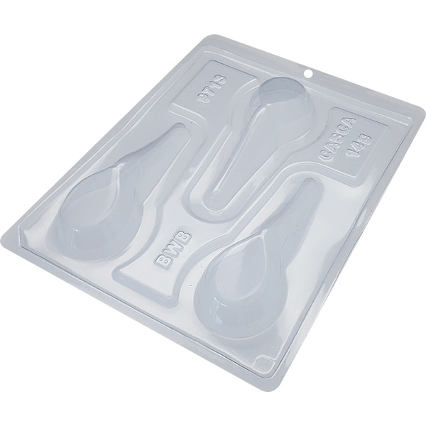 9713 - Colher Gourmet (9713) Especial (3 Partes) Forma especial com silicone (3 partes), ideal para produção de chocolates com muito mais praticidade e precisão. Abaixo mais informações do produto. mais informações Descrição do Produto Cavidades: 3 Dimensões (mm): Comp.: 122 x Larg.: 43 x Alt.: 12 Peso Casquinha: 14 Peso Médio: 30g