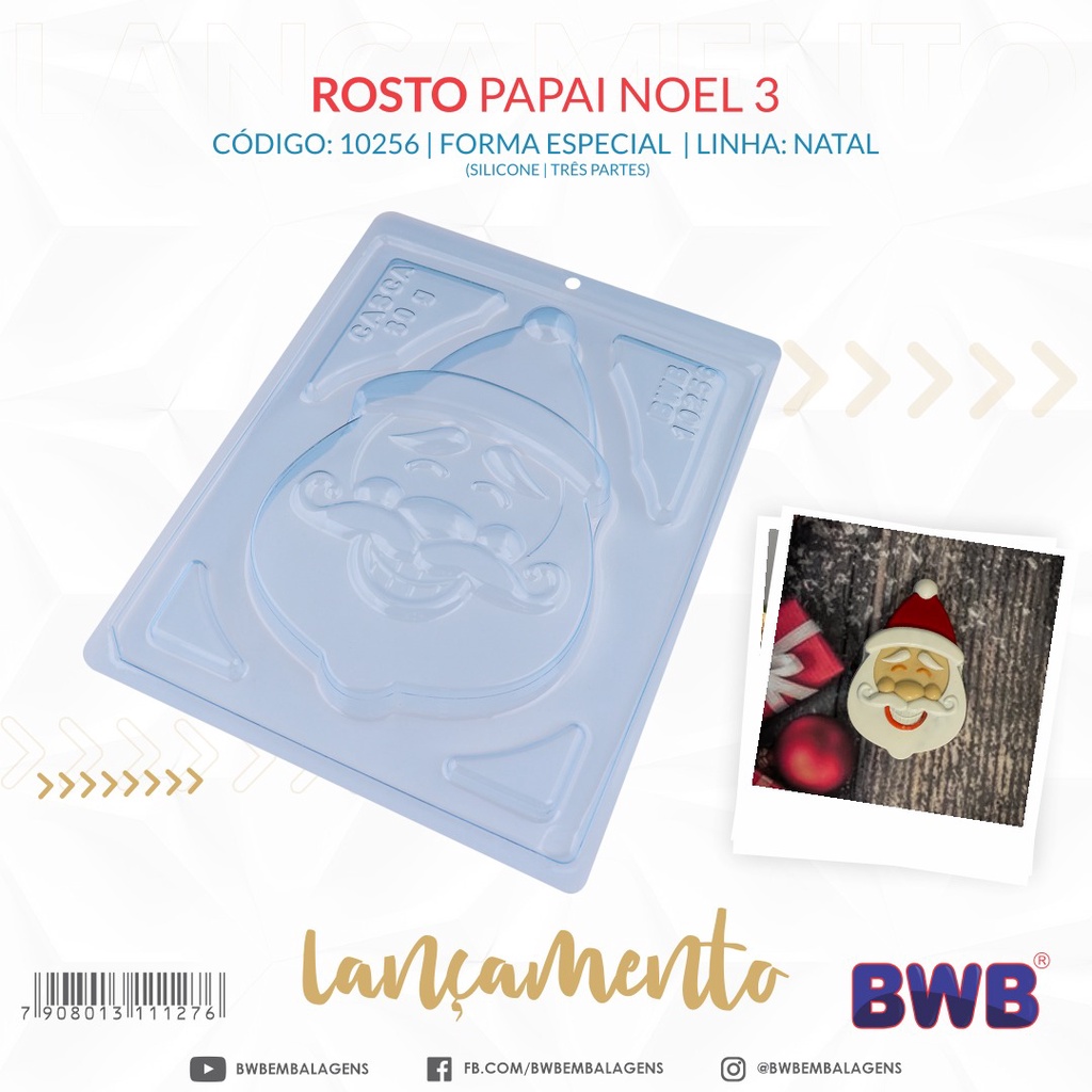 1~4FormaBWB Rosto Papai Noel3,Com Silicone(3partes)Para Bombons de Chocolate E Confeitaria Cód.10256 (CHOCO)