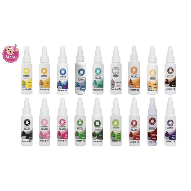 CORANTE SOFT GEL MAGO 15G PARA DECORAÇÃO ESCOLHA NO ANÚNCIO AS QUANTIDADES E CORES COM CORES ALEGRES E VIVAS VOCÊ PODERÁ ABUSAR DAS CORES EM SEUS PRODUTOS. PRODUTO NÃO TÓXICO.
