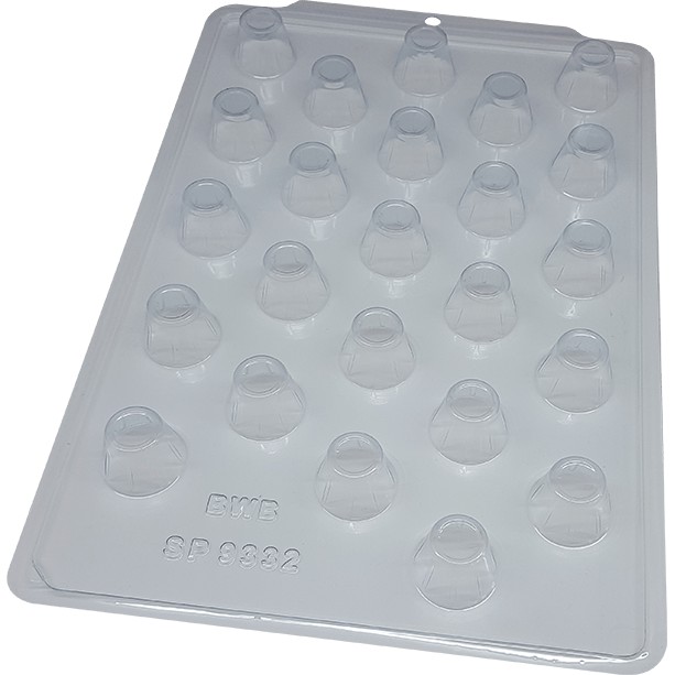 3588 - SP 9332 Copinho de Licor (3588) Semiprofissional Simples Forma Simples, ideal para produção de chocolates com muita praticidade. Abaixo mais informações do produto. mais informações Descrição do Produto Cavidades: 24 Diâm.: 32 x Alt.: 23 Peso Médio: 16g