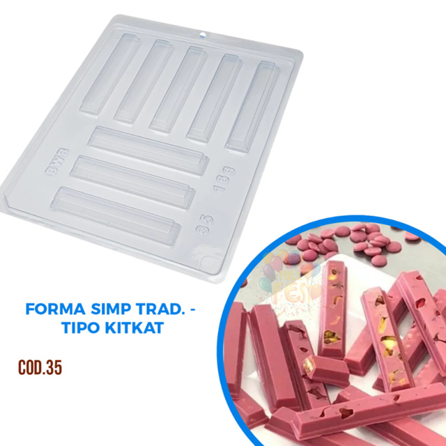 1~5 Forma BWB Simples Semiprofissional, Alto Rendimento Doces Finos Chocolates Tipo KitKat cod. 35 Forma Simples, ideal para produção de chocolates com muita praticidade. As formas especiais da Bwb são essenciais para deixar seu produto com um design único e diferente, além de facilitar o trabalho por serem leves e práticos. Por possuir diversos formatos divertidos, você pode combinar com temas especiais, épocas sazonais ou presentear de uma forma diferente e especial. CONTEÚDO: 01 UNIDADE, Escolha a quantidade que precisa! ✔Fotos Reais do Produto; ✔Agilidade na postagem (após confirmação pagamento); ✔Produtos Novos e a Pronta Entrega; ✔Produtos de Qualidade; ✔Atendimento Personalizado. 🚛Produto à pronta entrega para envio imediato! 🚚Receba no conforto de sua casa! Prezamos pela segurança e agilidade no envio. Qualquer dúvida, escreva no campo de perguntas abaixo, estamos à disposição! Aguardamos ansiosamente seu pedido! —------------------------------------------------------------------- DÚVIDAS FREQUENTES 💬MINHA COMPRA É SEGURA? -Toda transação no na Shopee é feita em ambiente seguro, isso significa que se caso ocorra algum imprevisto, A Shopee fará o estorno do seu pagamento 💬PRODUTO COM NOTA FISCAL? -Produto bem embalado e com nota fiscal 💬POSSO DEVOLVER SE EU NÃO GOSTAR? -Você tem 7 dias após o recebimento para devolução 💬QUANDO É FEITO O ENVIO? -Envio mais rápido da Shopee, em menos de 24h após confirmação da compra