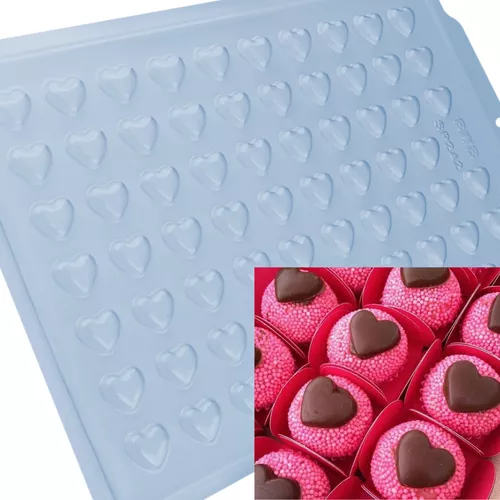 3587 - SP Coração Mini (3587) Semiprofissional Simples Forma Simples, ideal para produção de chocolates com muita praticidade. Abaixo mais informações do produto. mais informações Descrição do Produto Cavidades: 69 Dimensões(mm): Comp.: 21 x Larg.: 19 x Alt.: 5 Peso Médio: 1g