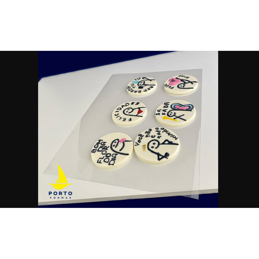 Dimensões aproximadas do produto:Diâmetro: 65x65x7Peso da casquinha: 25gQuantidade: 1 forma Quantidade de cavidades: 18 cavidades.Composição: 100% politereftalato de etileno (PET) (PE). ***Não acompanha o doce e/ou acessórios, somente a forma***