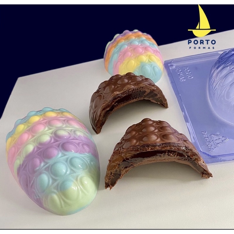 Lançamento páscoa 2023 - PORTO FORMAS Forma para chocolate: Ovo Páscoa POP IT 350g (3 PARTES) COD: P1051