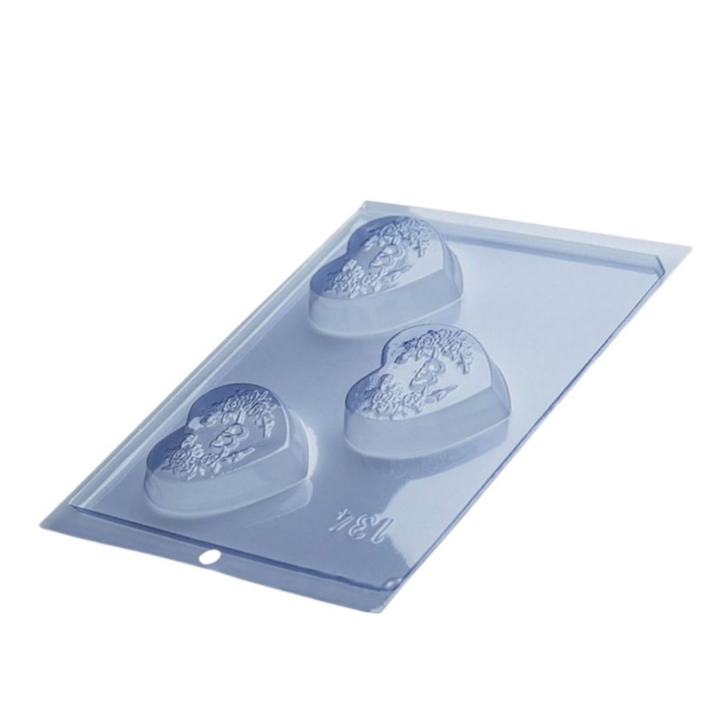 Forma Simples Coração Decorado COD: 134 (3 cavidades) Ideal para produção de chocolates com muita precisão e praticidade.