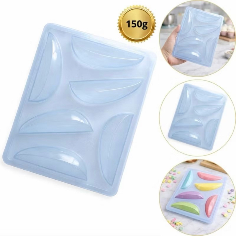 1~6 Formas BWB Ovo 6 Fatias 150g PEQUENO SILICONE 3 Partes 10643 6 CAVIDADES Cavidades: 6 Dimensões da cavidade: Comp.: 108 mm X Larg.: 35 mm X Alt.: 30 mm Peso casca (cada fatia): 15 g Peso médio (cada fatia): 61 g Forma especial com silicone (3 partes), ideal para produção de chocolates com muito mais praticidade e precisão. Possui uma “marquinha” indicando a quantidade necessária de chocolate, levando para geladeira uma única vez. Ela proporciona uma casca uniforme e um acabamento perfeito sempre com o mesmo peso
