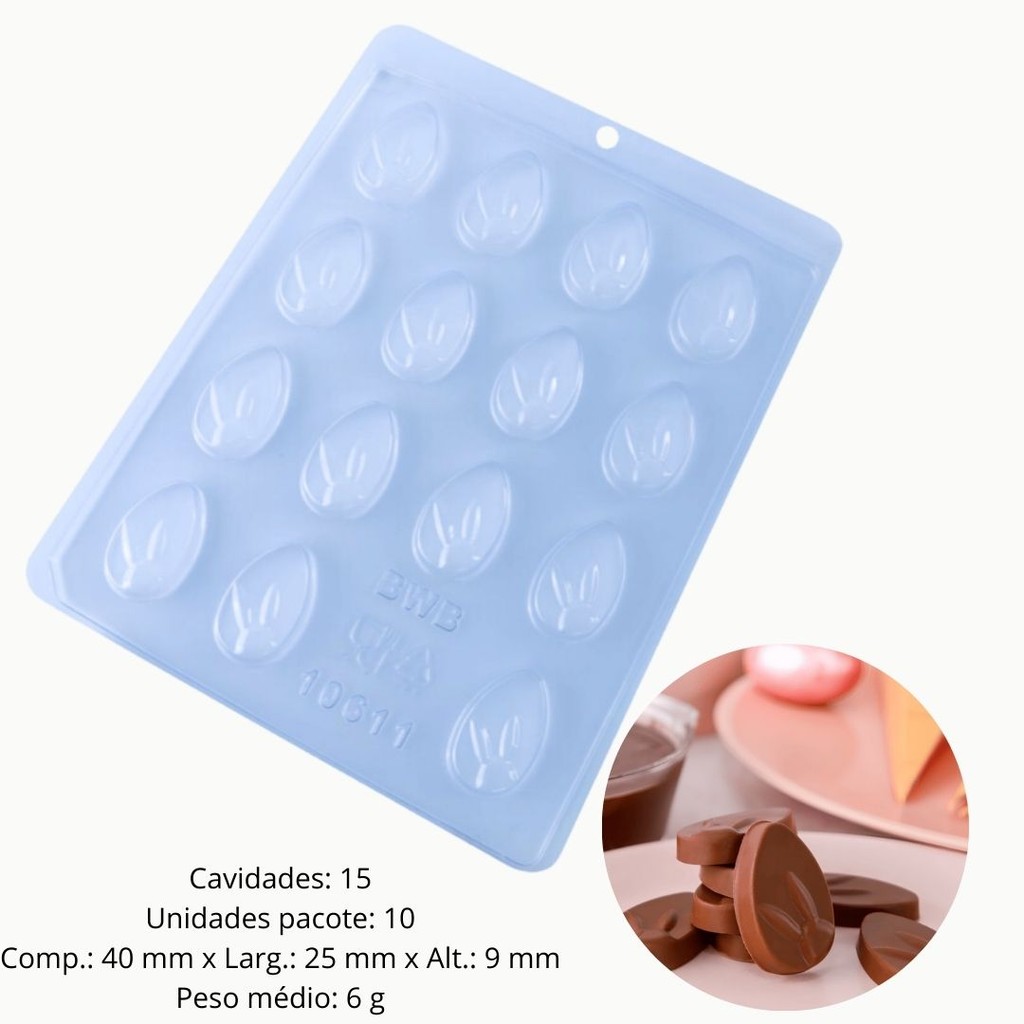 TABLETINHO OVO COELHO IDEAL PARA PRODUÇÃO DE CHOCOLATES COM MUITA PRATICIDADE. ABAIXO MAIS INFORMAÇÕES DO PRODUTO: CAVIDADES: 15 COMP.: 40 MM X LARG.: 25 MM X ALT.: 9 MM PESO MÉDIO: 6 G