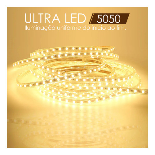 1 a 10 Metros Mangueira Fita de Led 5050 Branco Quente ou Frio 110v ou 220v + conector Fonte Rabicho
